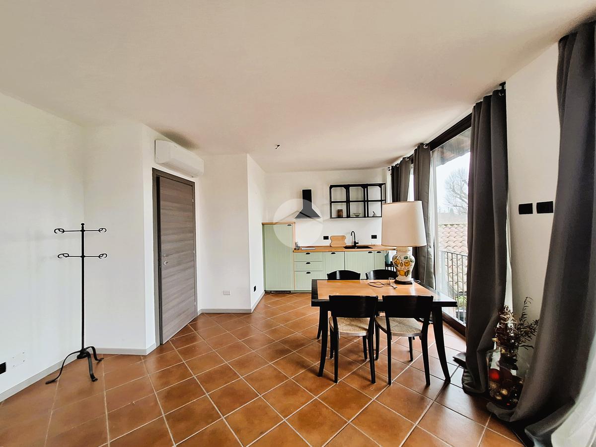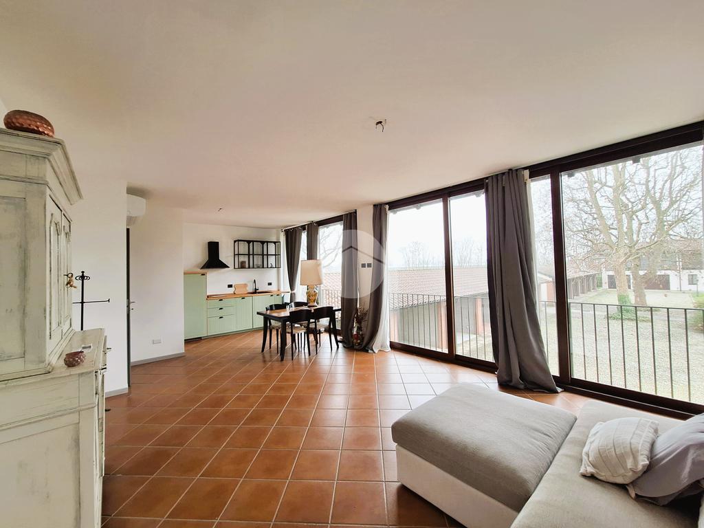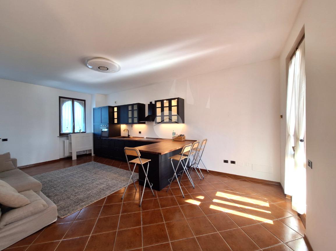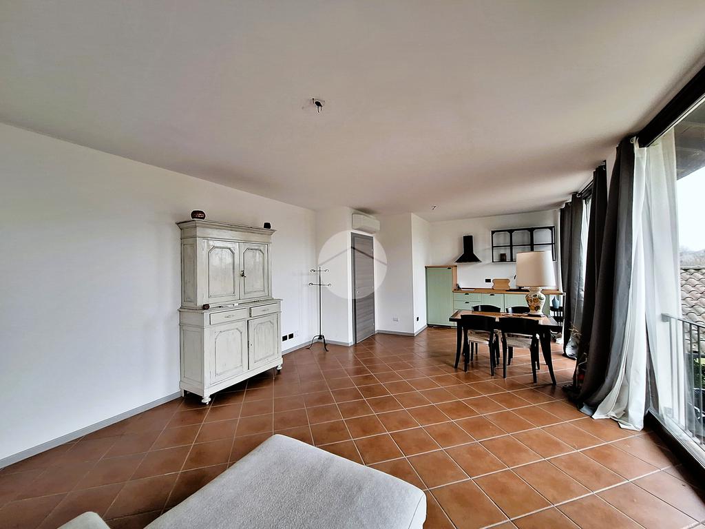La cucina di circa 32 mq colpisce per la luminosità naturale, grazie all'affaccio diretto su uno splendido terrazzo coperto di 21 mq esposto a sud, uno spazio ideale per creare un salotto outdoor da godere in ogni stagione.
