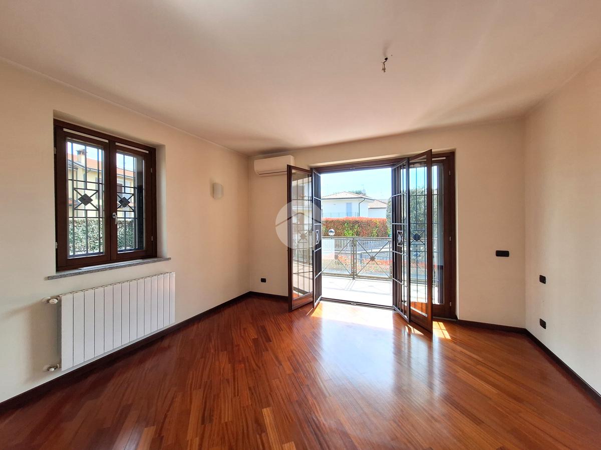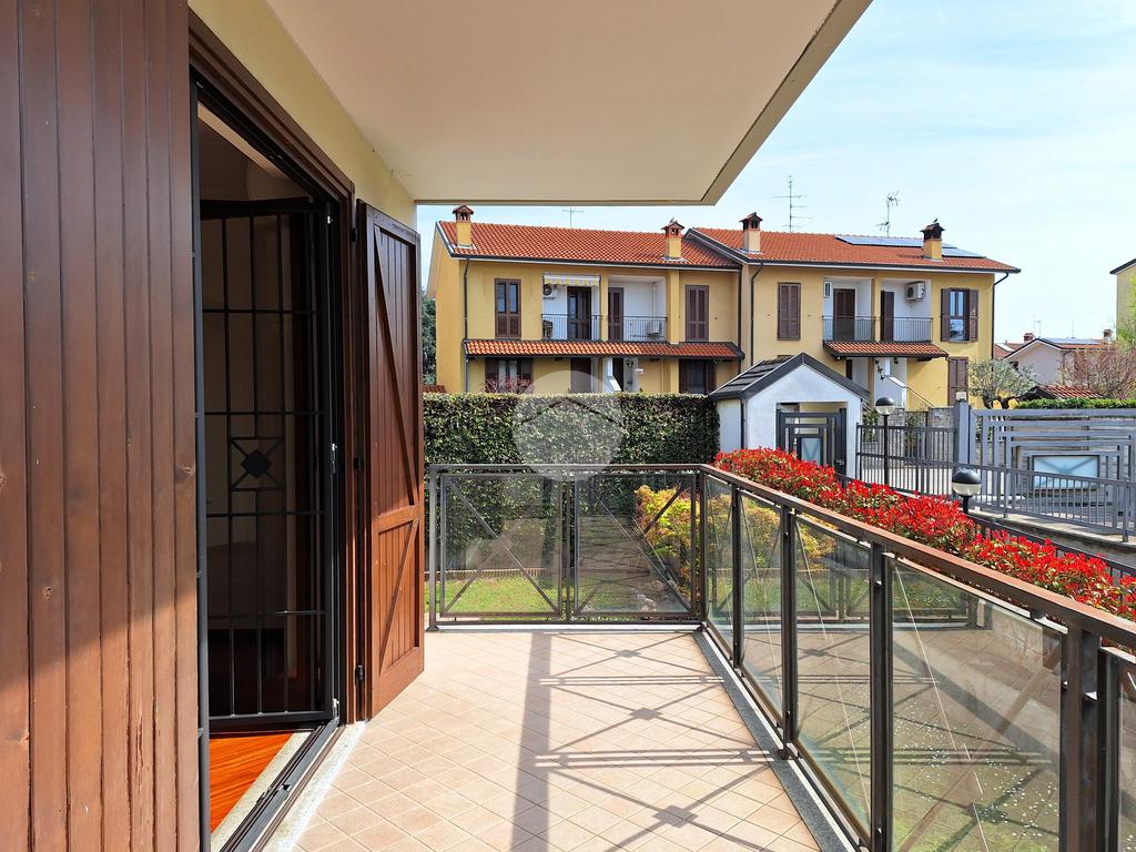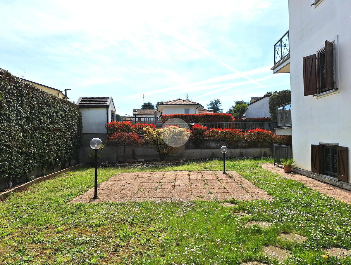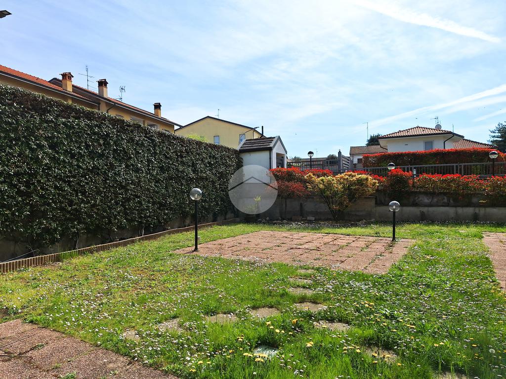 Il giardino di circa 200 mq si estende su due lati, è dotato di cancelletto pedonale privato e impianto di irrigazione automatizzato.