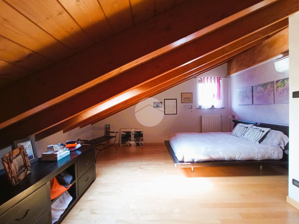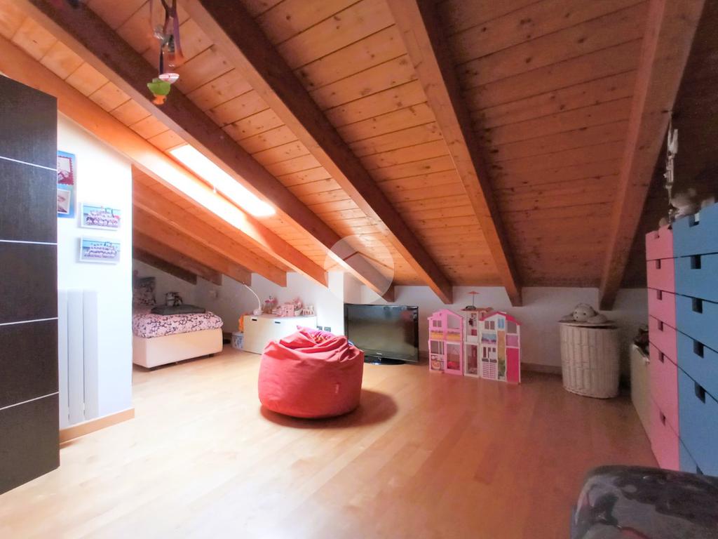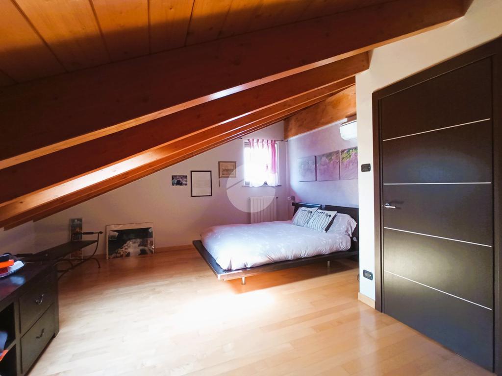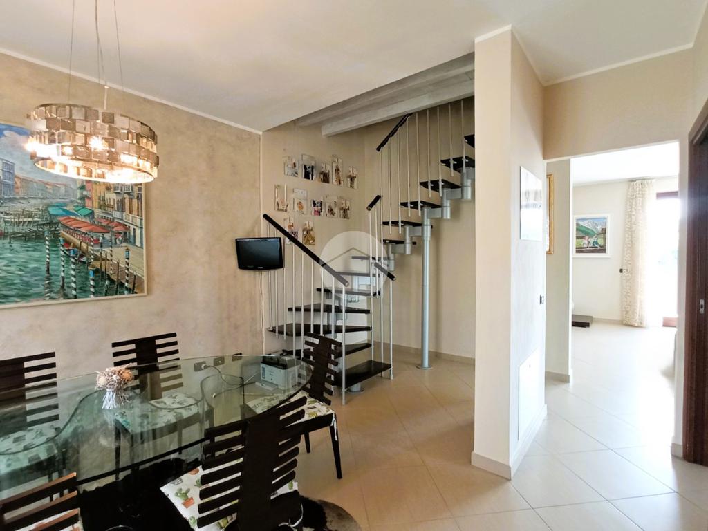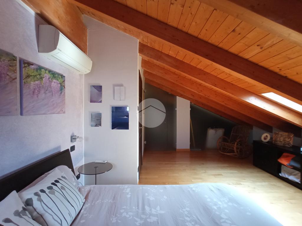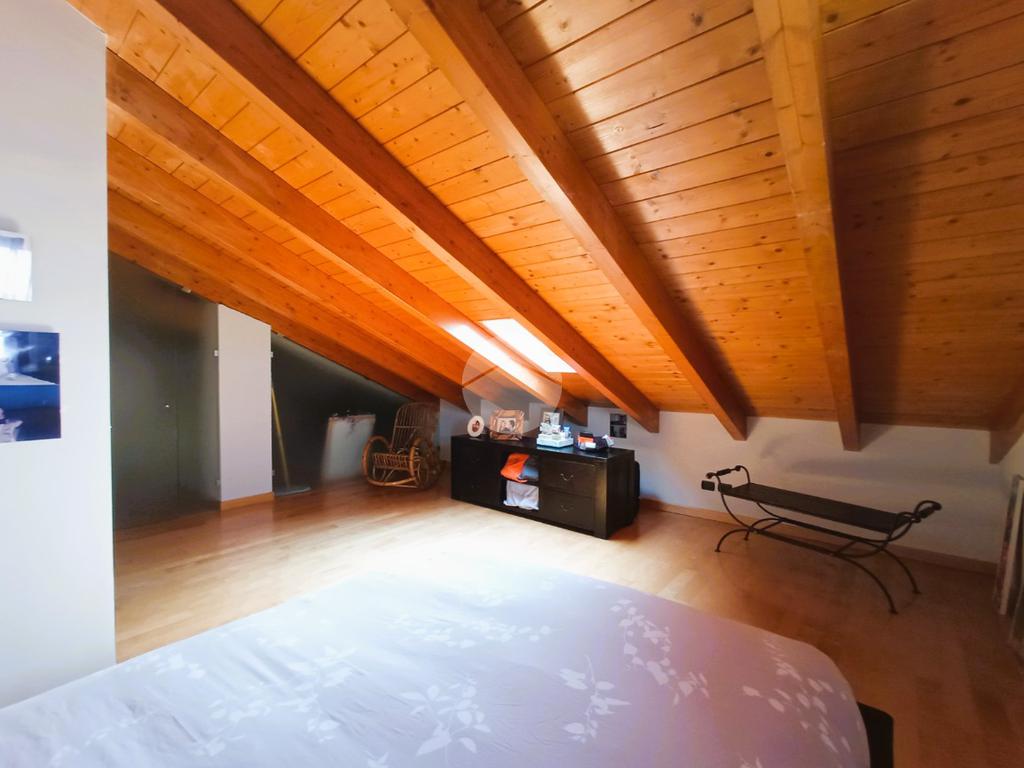 L'unità immobiliare si sviluppa su due livelli: ingresso diretto su un’ampia e luminosa zona giorno da cui si accede al terrazzo e al balcone; completa il piano un primo bagno di servizio con box doccia e porta-finestra. Accessibile tramite scala interna, il livello superiore è interamente dedicato alla zona notte, garantendo massima privacy; il piano ospita inoltre un secondo bagno finestrato con vasca, rifinito con materiali di pregio.