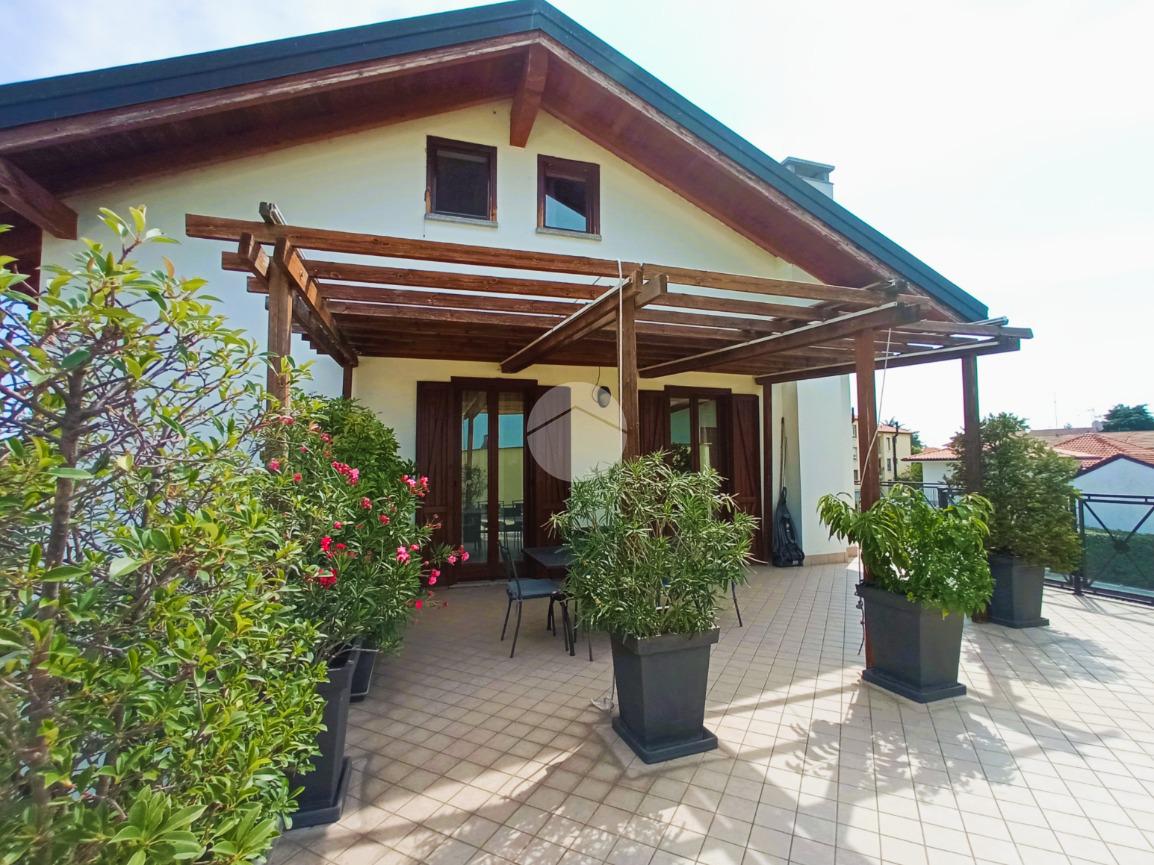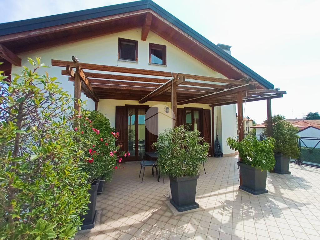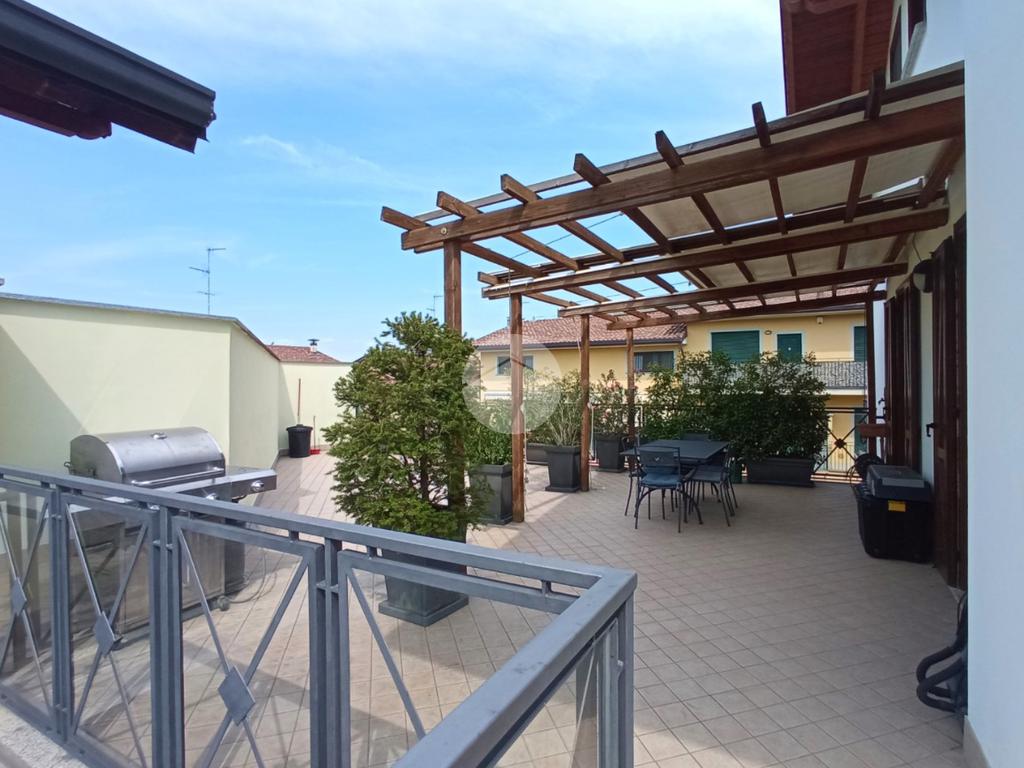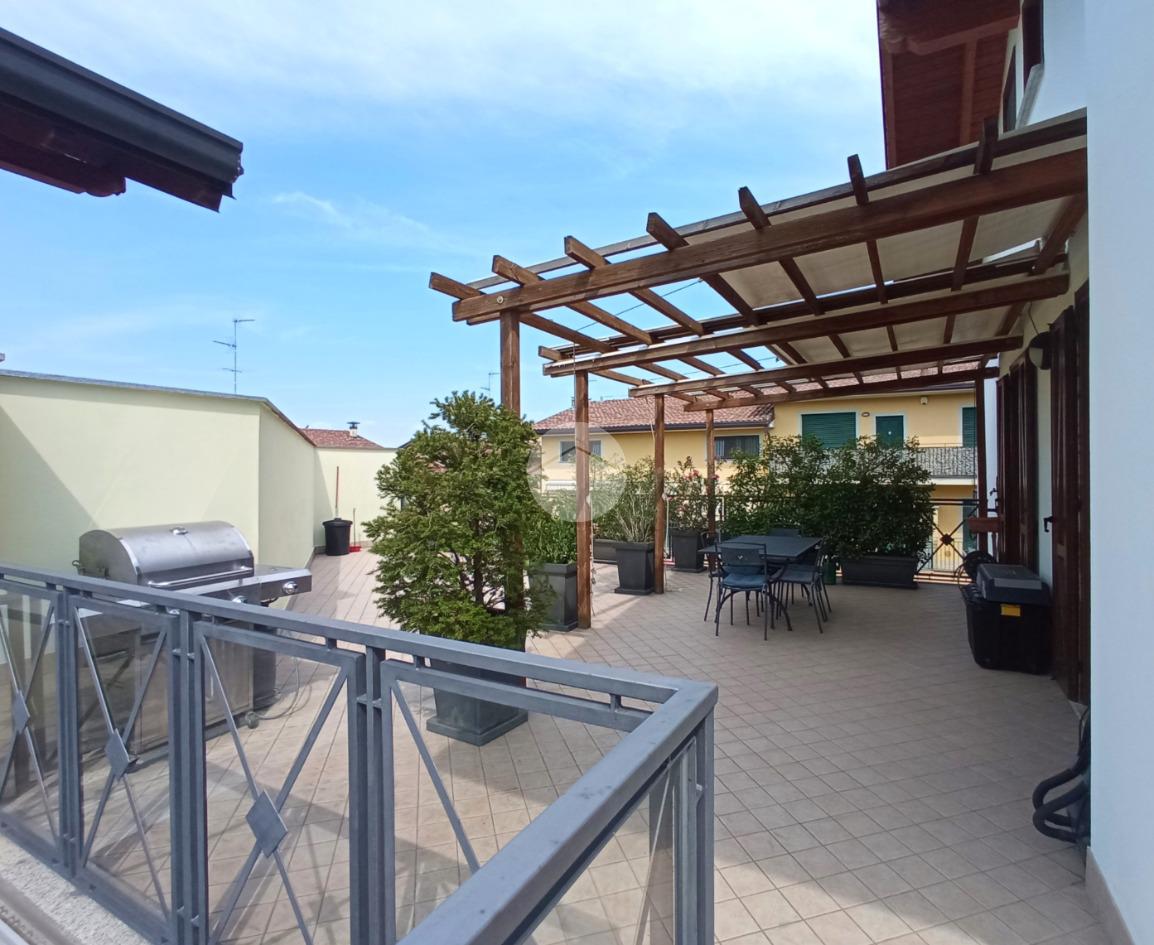 Il vero valore aggiunto dell'abitazione è il grande terrazzo privato, parzialmente coperto da un pergolato strutturale. Questo spazio esterno rappresenta una naturale estensione della zona giorno, ideale per il relax all'aperto e per ospitare zone pranzo esterne.