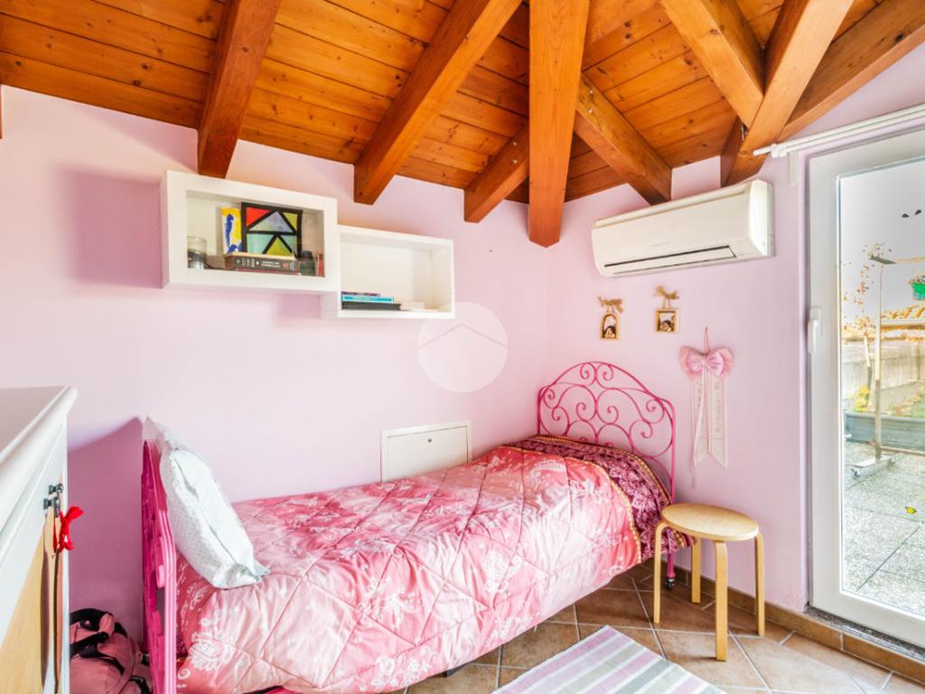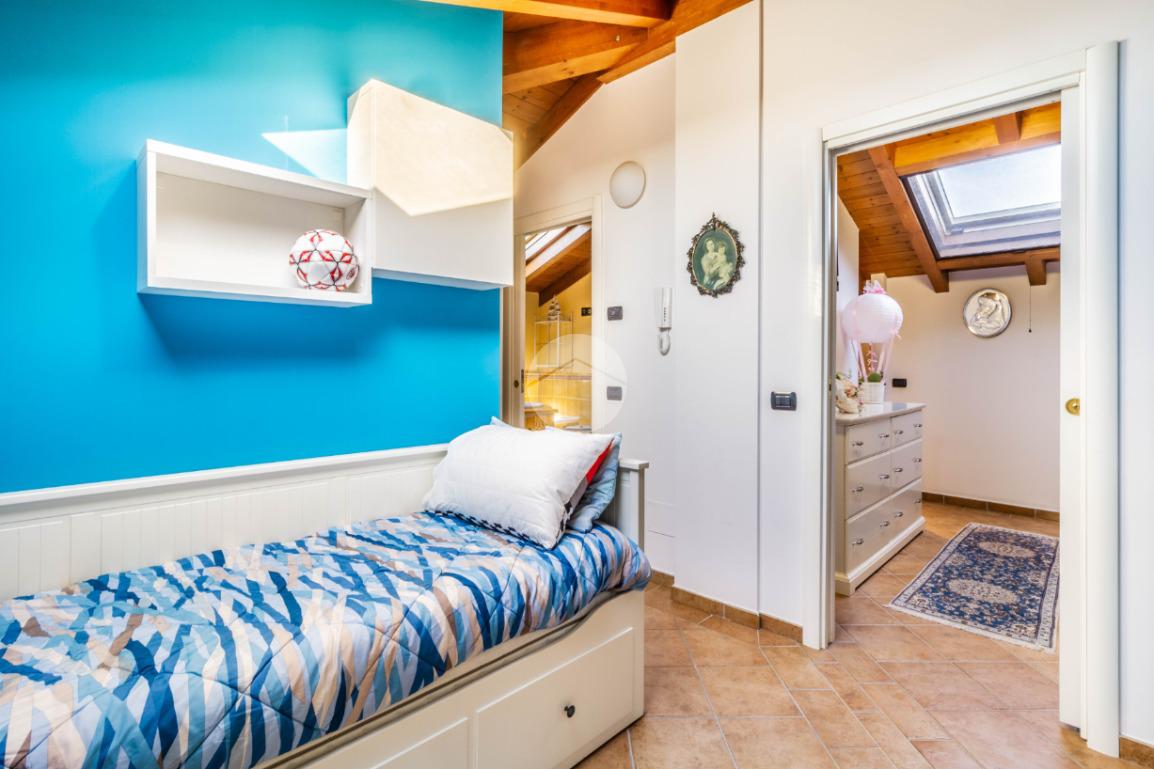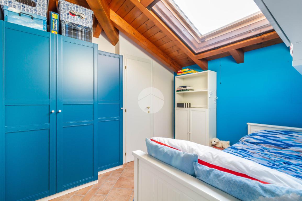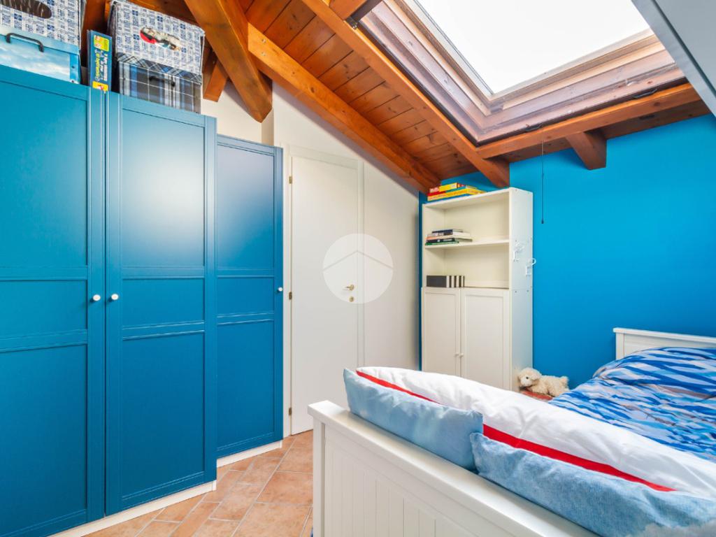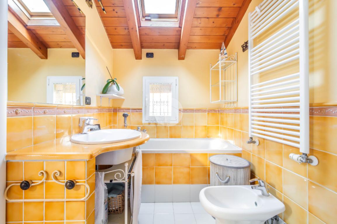 Al piano superiore è presente un affascinante sottotetto rifinito con travi in legno a vista. Qui troviamo la camera matrimoniale con cabina armadio, altre due stanze versatili e un secondo bagno finestrato con vasca.